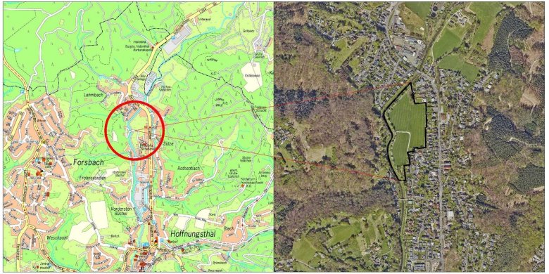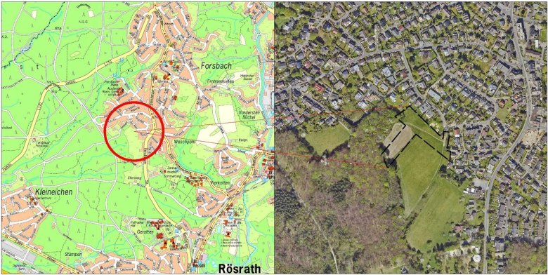 Luftbild: Geobasisdaten der Kommunen und des Landes NRW © Geobasis NRW, 202208/2024: Der Rat der Stadt Rösrath hat die 36. Änderung des Flächennutzungsplans und den Bebauungsplan Nr. 130 "ÖkoTec-Campus Rösrath" aufgestellt.