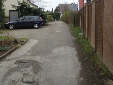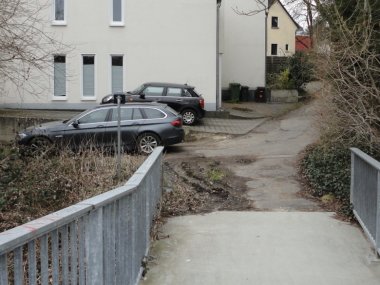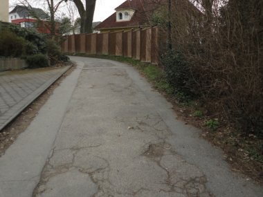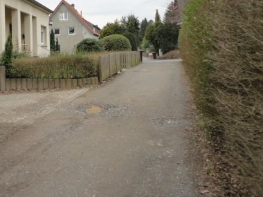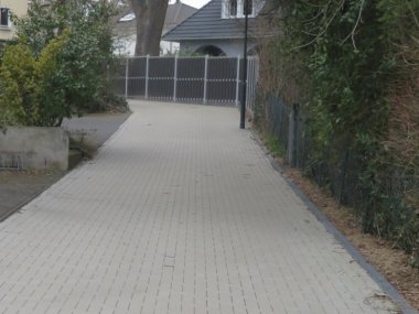Verbreiterung und einheitliche Oberfläche des Weges nach der Umbaumaßnahne.Ende Geh- und Radweg - Beginn Heinrich-Heine-Weg